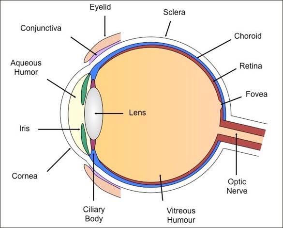 The lens is located just behind the iris (the coloured part of your eye). It helps to focus light entering the eye on to the retina (the light sensitive layer at the back of the eye).